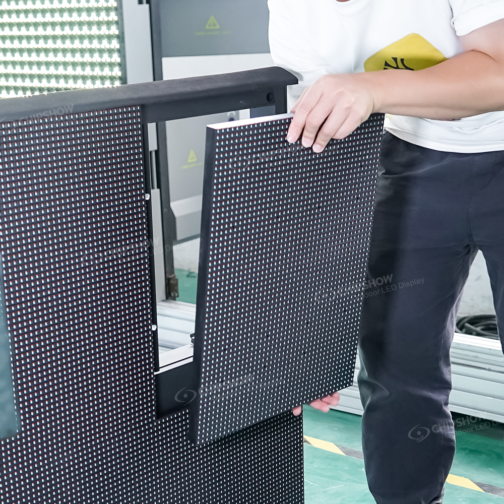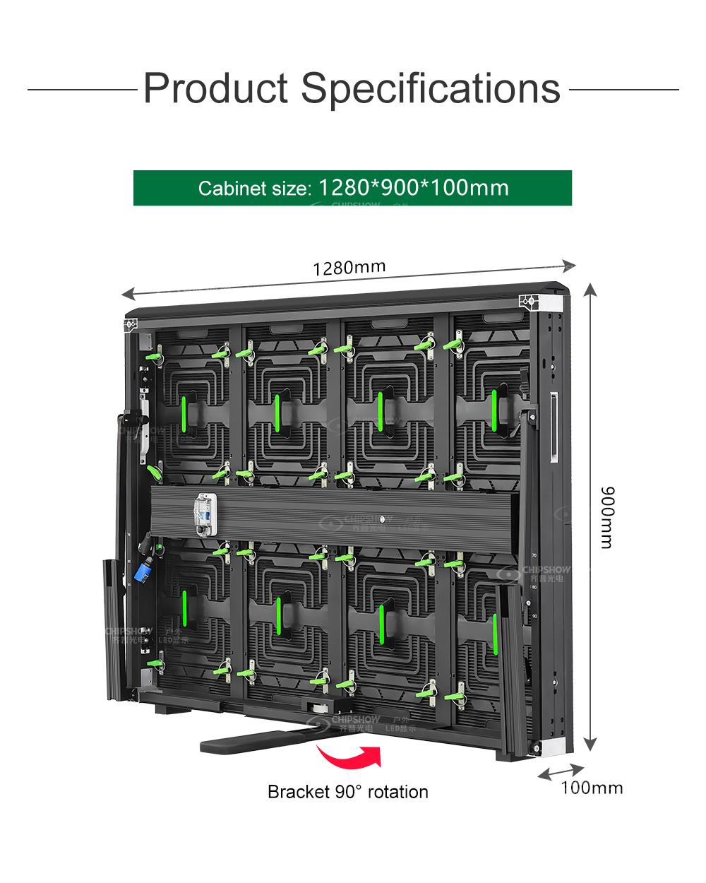 Same 1280 × 900 × 100 mm cabinet size supports unified mounting, spares planning, and line-up consistency when a venue uses multiple perimeter grades.