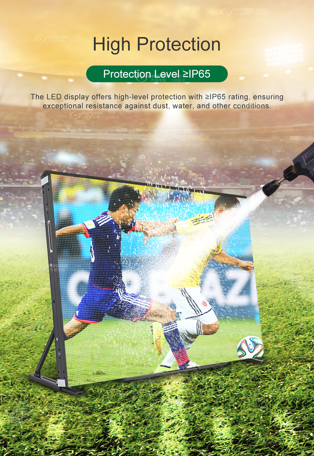 IP65/IP65 protection supports harsher exposure on the pitch side.
