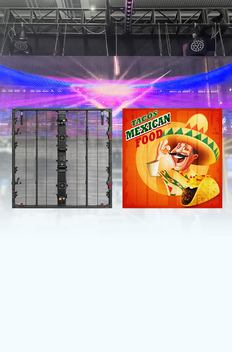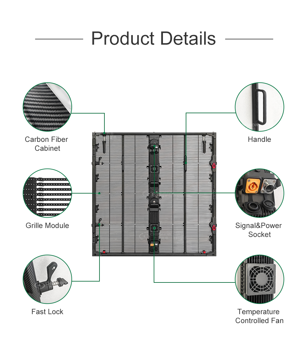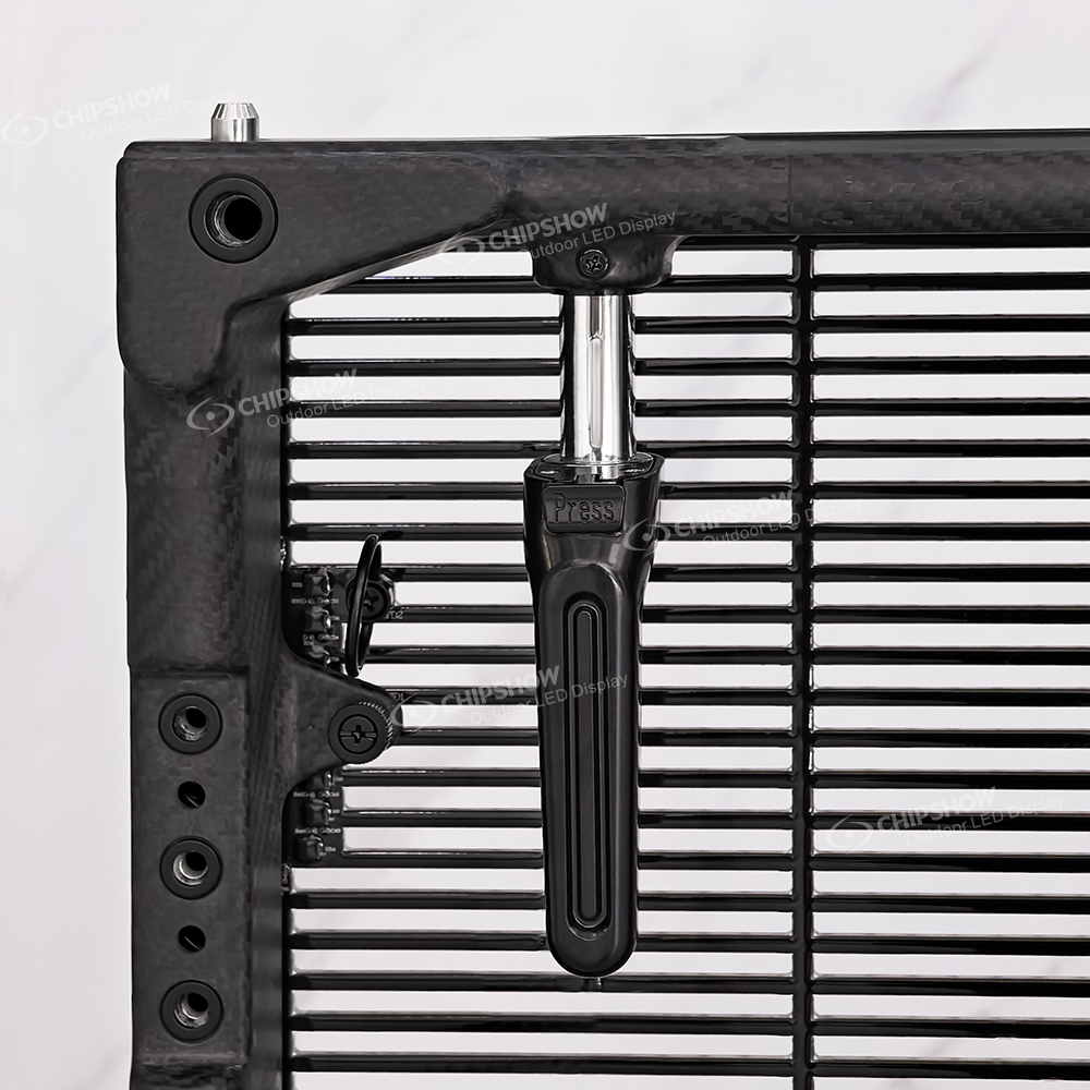 C-Carbon P8.93 pairs a 1000×1000 mm carbon-fiber frame with 65% transparency to minimize wind resistance for stage sides and façades. Weighing just 12.5 kg per cabinet, it features ≤150W/㎡ low power consumption, 3840 Hz refresh, and IP65 protection—delivering safety and efficiency for demanding outdoor tours.