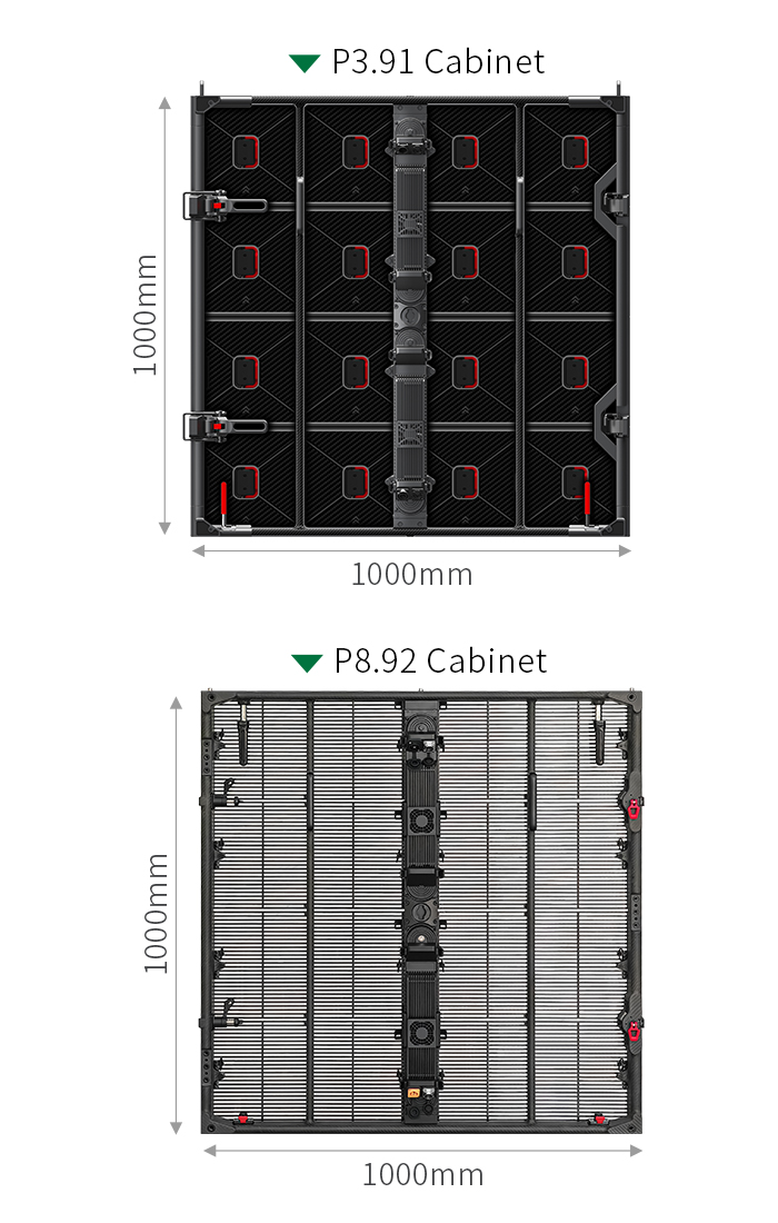 The 1000x1000mm size covers four times the area of a standard 500x500mm panel. This means fewer cabinets to move, fewer cables to connect, and fewer seams to align, reducing load-in time by up to 40% for large walls.