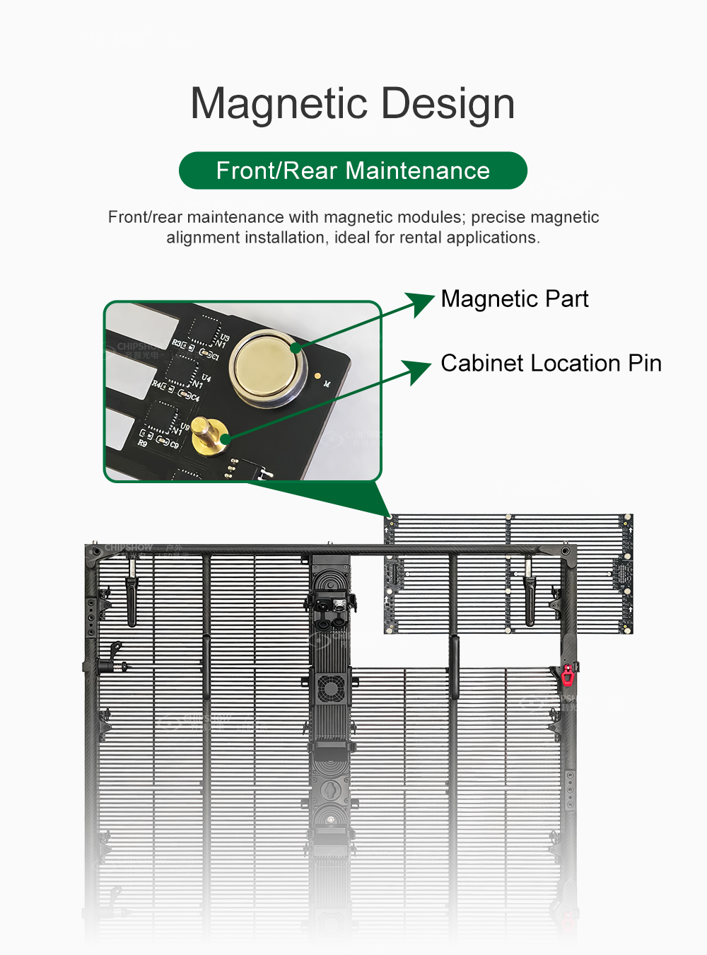 - Front & rear service — Magnetic alignment allows rapid module swaps from any side.