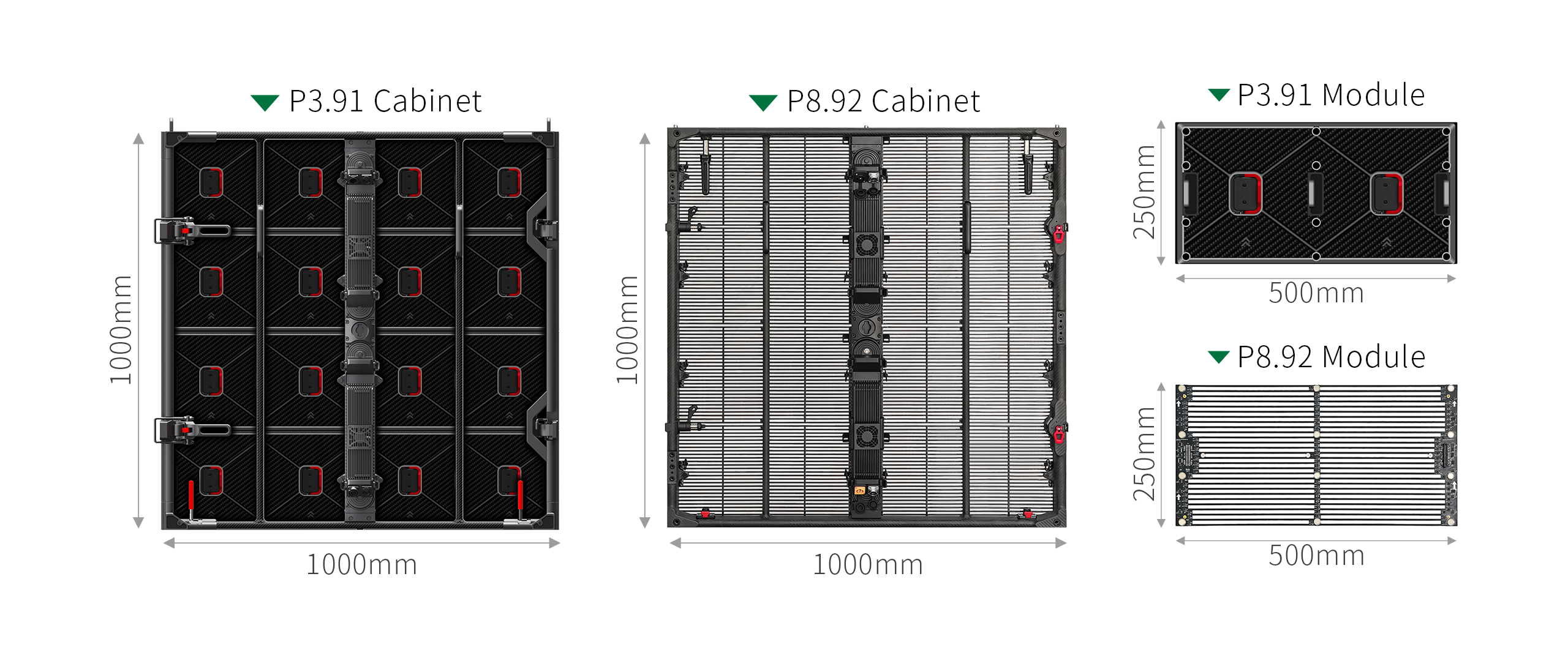 Built on a 1000×1000 mm carbon-fiber frame, C-Carbon P3.91 combines rapid deployment with outdoor readability. It features ≤6000 cd/㎡ brightness, 3840 Hz refresh, magnetic front/rear service and IP65 (front/back) protection for demanding rental workflows.